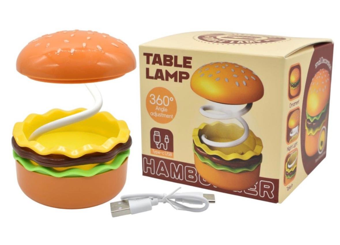 Original lámpara de mesa con diseño creativo de hamburguesa, perfecta para decorar escritorios, mesas de noche o habitaciones infantiles. Su estilo divertido y colorido la convierte en un accesorio ideal para quienes buscan una iluminación diferente y llamativa.